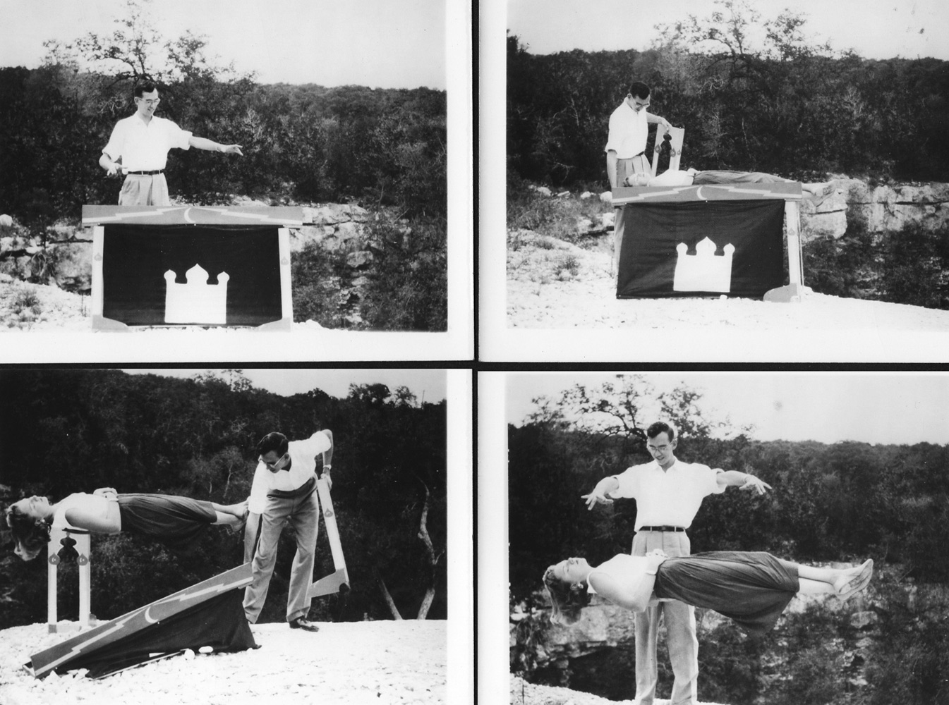 Walter Blaney experiments with an earlier Levitation Illusion design.